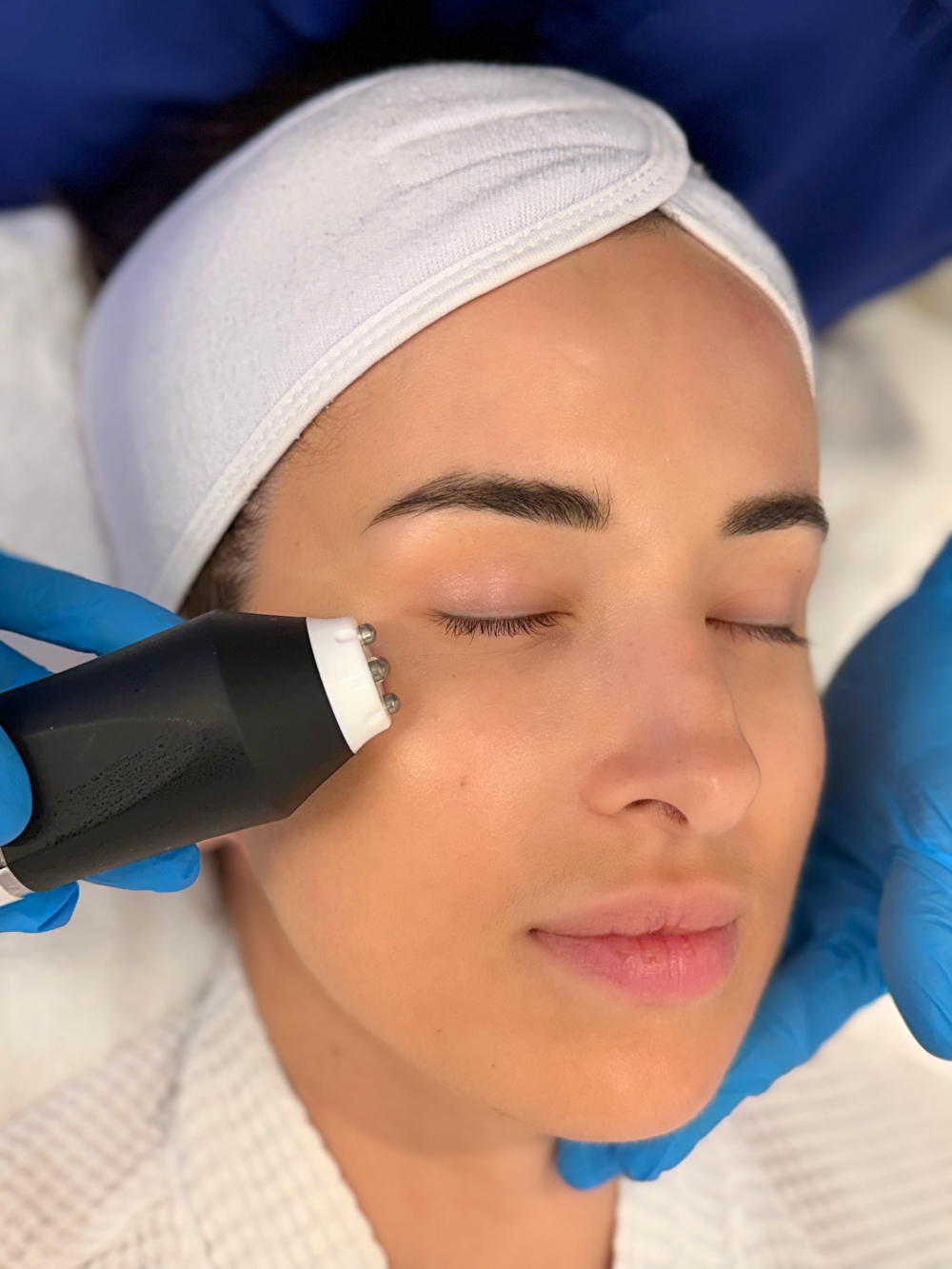 Many clients notice visible improvement in puffiness and brightness immediately after their first treatment. Results continue improving over the following weeks as collagen production increases.